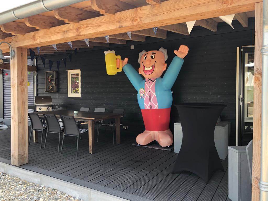 Eigenlijk is het nog leuker om een grote Abraham in de tuin te zetten en in de woonkamer tegelijkertijd een kleinere opblaasbare variant. Zo wordt het een dubbel groot feest!