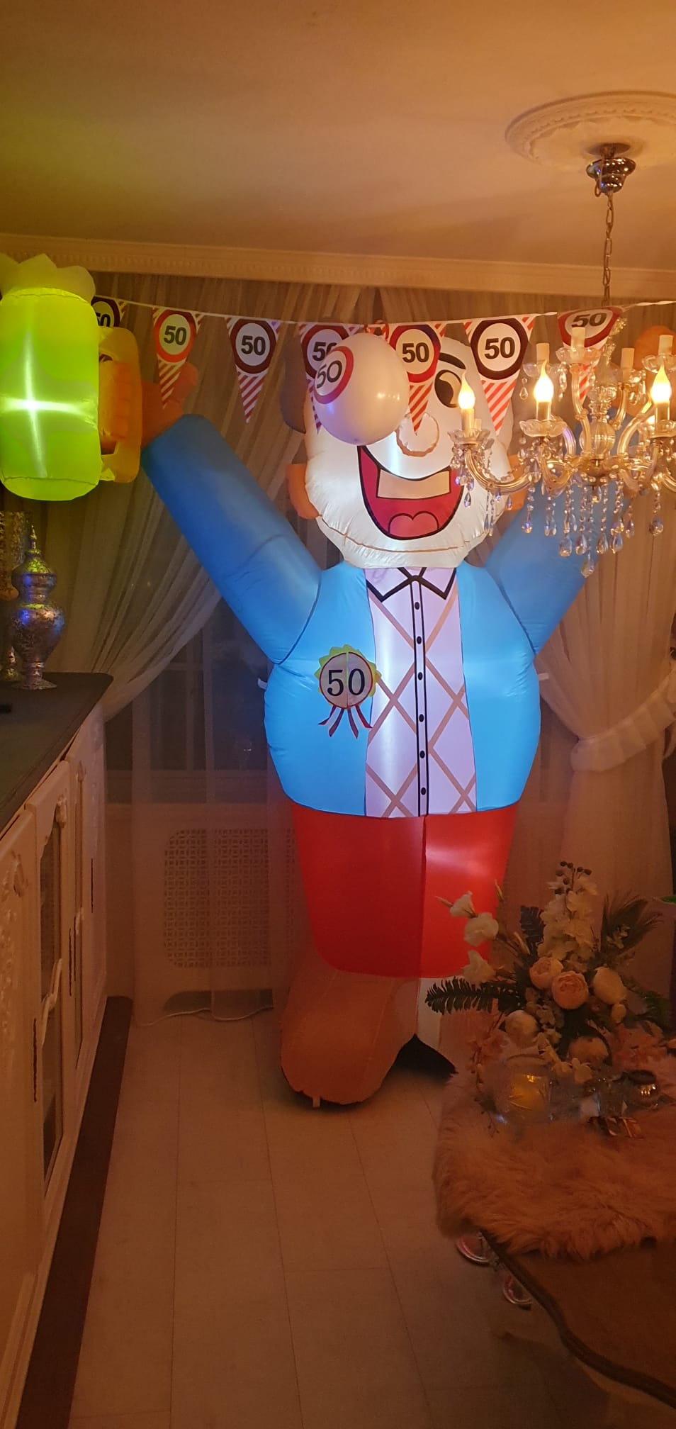 Een indoor opblaasfiguur is dé perfecte aanvulling voor een geslaagd feestje voor de jarige. Omdat het altijd in de buurt is bij de jarige binnen in het huis/appartement/verzorgingstehuis etc.