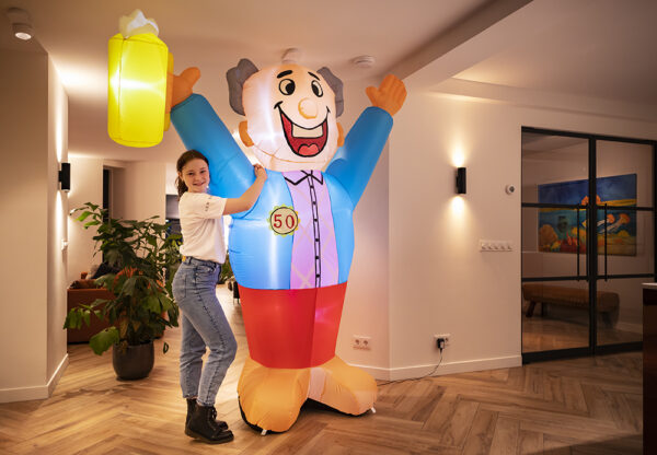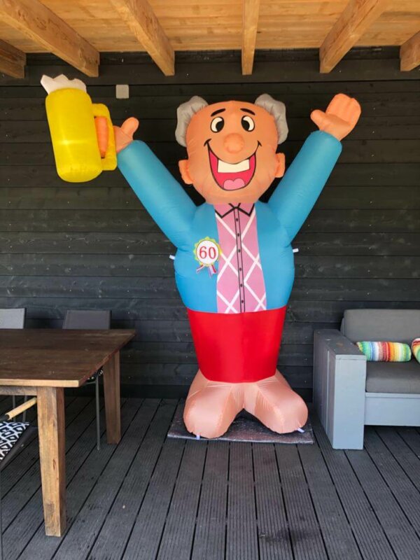 Een indoor opblaasfiguur is dé perfecte aanvulling voor een geslaagd feestje voor de jarige. Omdat het altijd in de buurt is bij de jarige binnen in het huis/appartement/verzorgingstehuis etc.