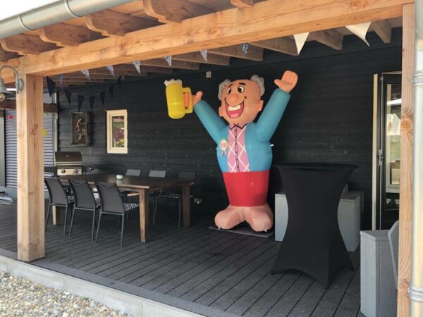 Wij vinden het leuk om onze klanten te laten zien hoe de opblaasfiguren eruit zien in de woonkamer, slaapkamer of misschien op het balkon. Om zo een leuke indruk te krijgen van het opblaasfiguur bij ieder ander. Wij vragen bij het ophalen of de klant een foto wilt maken van het opblaasfiguur.