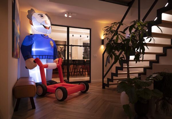 Wij vinden het leuk om onze klanten te laten zien hoe de opblaasfiguren eruit zien in de woonkamer, slaapkamer of misschien op het balkon. Om zo een leuke indruk te krijgen van het opblaasfiguur bij ieder ander. Wij vragen bij het ophalen of de klant een foto wilt maken van het opblaasfiguur.