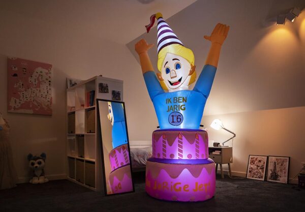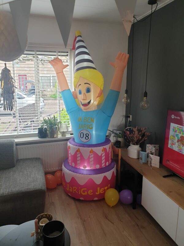 Een indoor opblaasfiguur is dé perfecte aanvulling voor een geslaagd feestje voor de jarige. Omdat het altijd in de buurt is bij de jarige binnen in het huis/appartement/verzorgingstehuis etc.