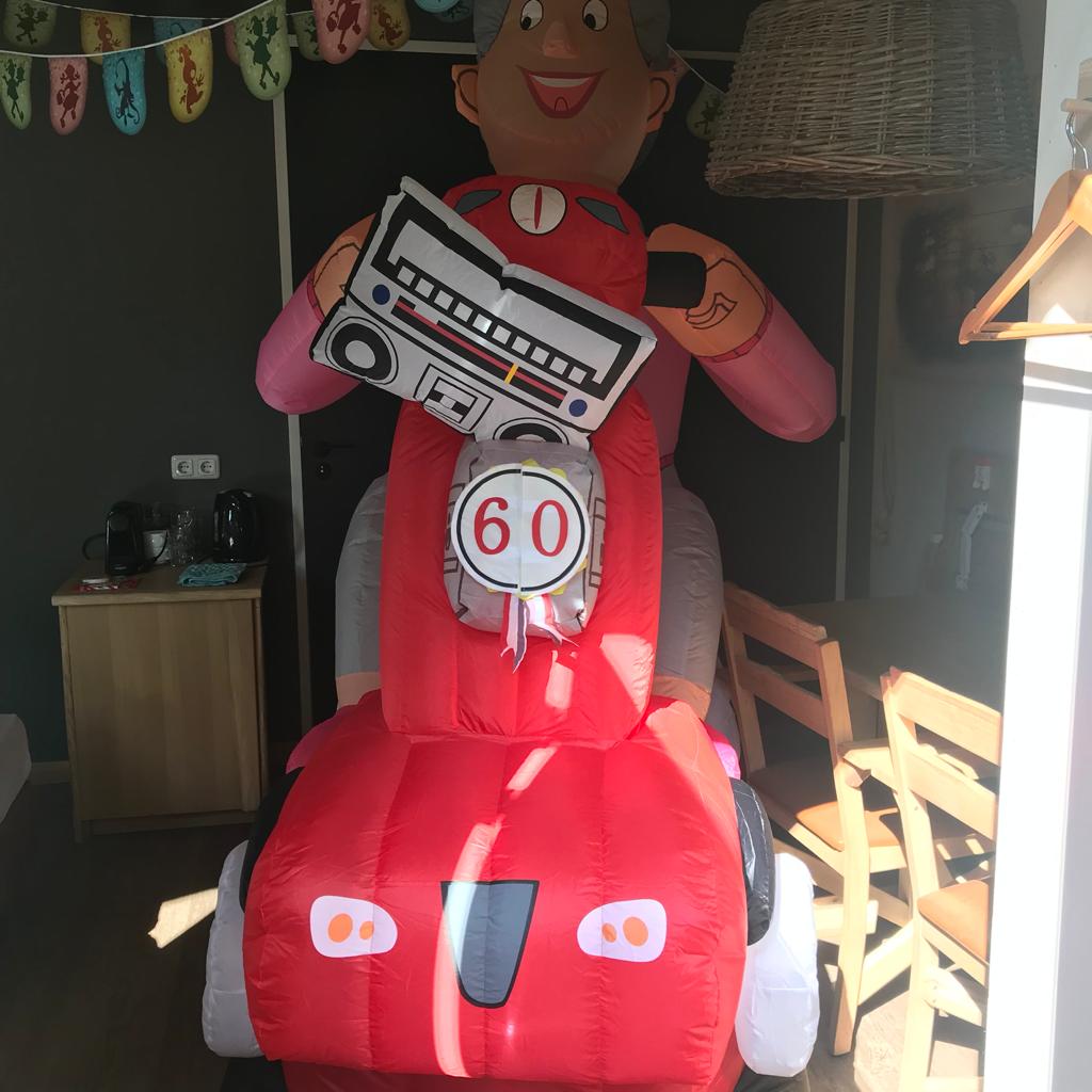 Wij vinden het leuk om onze klanten te laten zien hoe de opblaasfiguren eruit zien in de woonkamer, slaapkamer of misschien op het balkon. Om zo een leuke indruk te krijgen van het opblaasfiguur bij ieder ander. Wij vragen bij het ophalen of de klant een foto wilt maken van het opblaasfiguur.